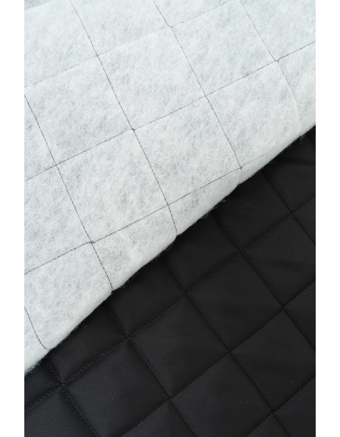Polyesterivuorikangas, johon on tikattu 5cm vinoruututikkauksella 80g levyvanu.