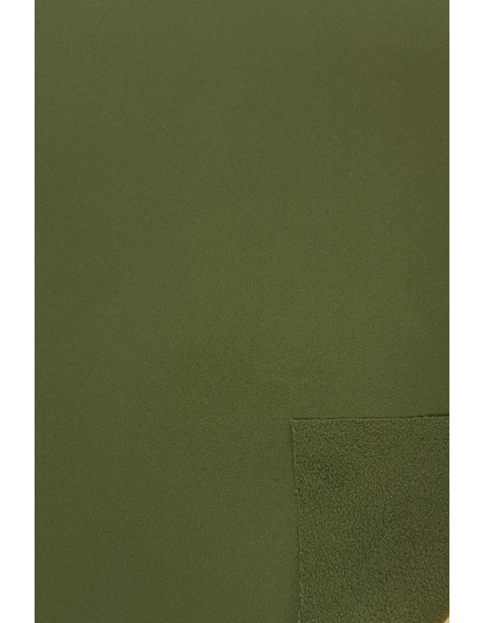 Ohuehko, pinnaltaan tiivis ja nurjalta puolelta pehmeän fleecemäinen softshell -kangas.