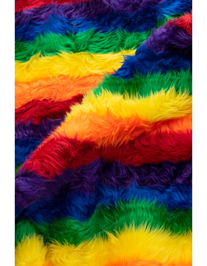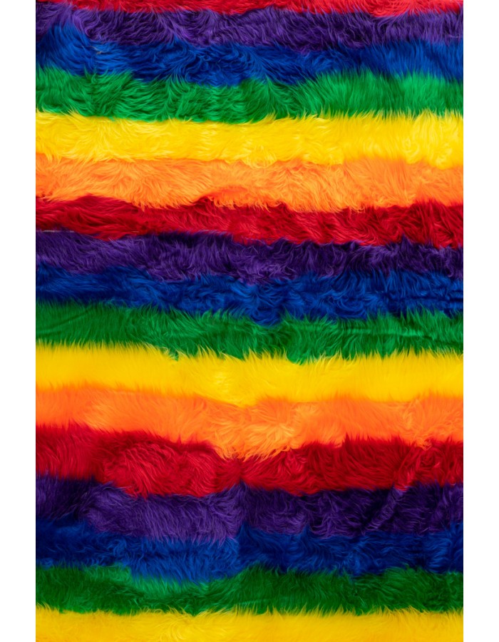 Upea sateenkaarenväreissä hehkuva muhkea karva. Tämä ihanuus soveltuu hyvin esimerkiksi vaatetukseen, asusteisiin tai lavastukseen!