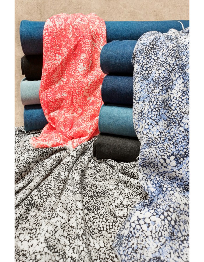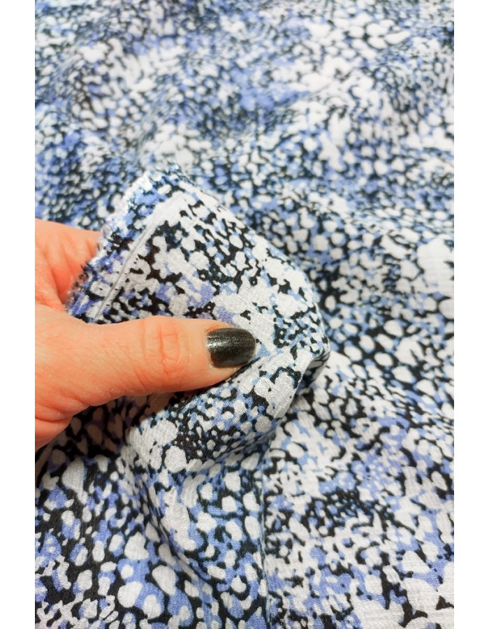 Kreppimäinen ja ilmava viskoosisekoitekangas, joka sopii hyvin mm. puseroiden, mekkojen ja asusteiden valmistukseen.