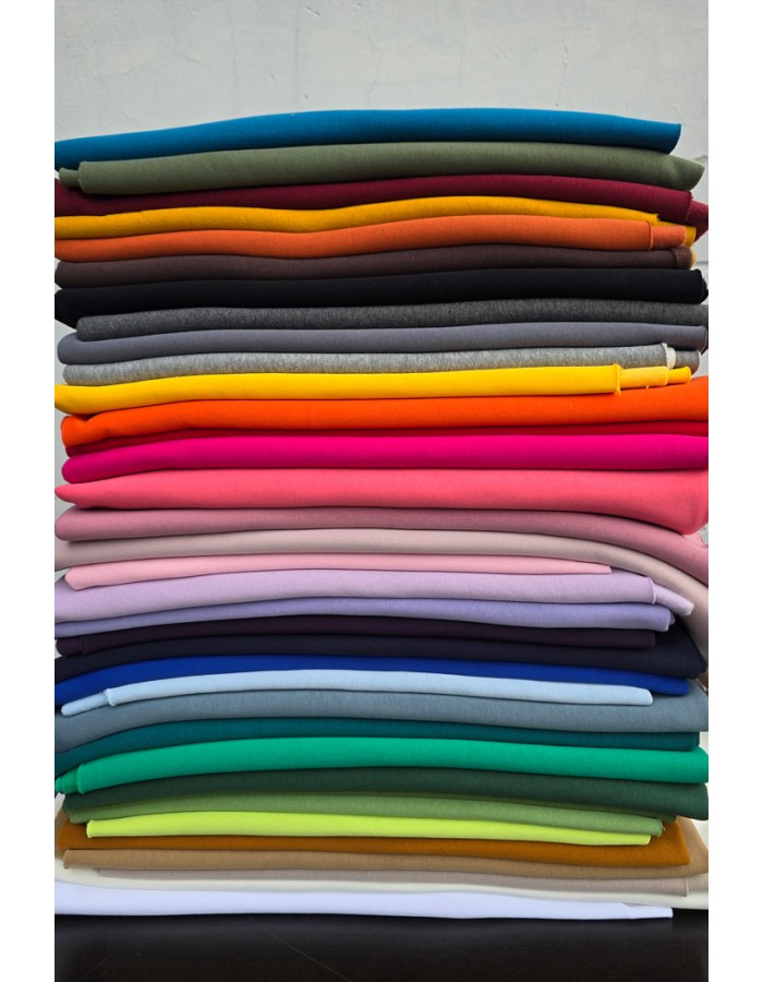 Pehmeäksi harjattua collegekangas monipuoliseen vaatetuskäyttöön. Tähän sopivia resorivärejä löytyy Rauno -resorista.